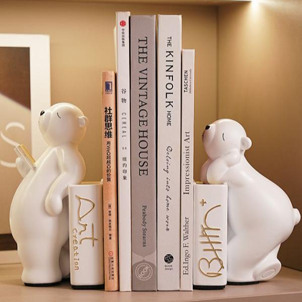 The Polar Bear Bookend is a charming and functional home decor piece that will add a touch of arctic elegance to any bookshelf or desk. It is made of high-quality materials and features a beautifully detailed design of a polar bear. The bookend is carefully crafted with attention to detail, and the polar bear's fur and features are lovingly rendered to give it a lifelike appearance. Its sturdy construction and weight provide ample support to keep even heavy books upright and organized. The Polar Bear Bookend is not only a delightful addition to your home decor, but it also serves a practical purpose by keeping your books in place. It's perfect for those who love arctic animals or simply appreciate unique and functional decor.