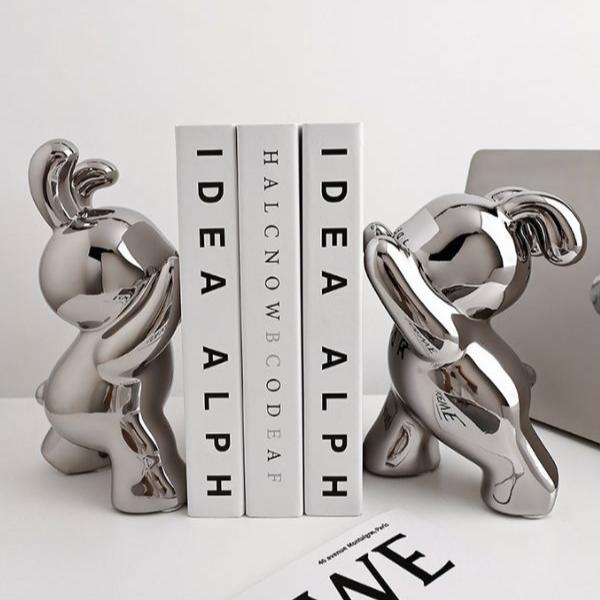 Expertly designed and crafted, our Creative Porcelain 2Pcs Push Rabbit Bookends Silver add both function and style to your bookshelf. Made of high-quality porcelain, these bookends feature a unique rabbit design that is both cute and functional. Keep your books organized while adding a touch of whimsy to your home decor.