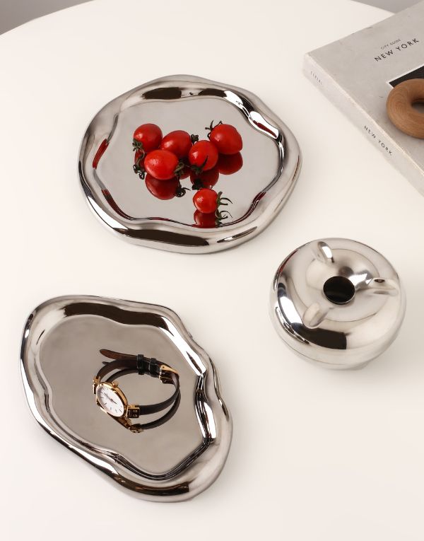 Organize your jewellery, rings, bracelets, and more in style with our European-style serving tray. Made from high-quality porcelain, this tray adds elegance to any room while keeping your items organized. Its versatile design also makes it perfect for serving food. Elevate your organization and presentation with this beautiful tray.