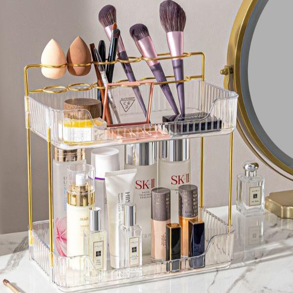Organize your makeup collection like a pro with our Luxury Makeup Organizer. This rack boasts a large capacity for all your cosmetics, keeping them easily accessible and neatly displayed. Save time and hassle with this sleek and functional storage solution.