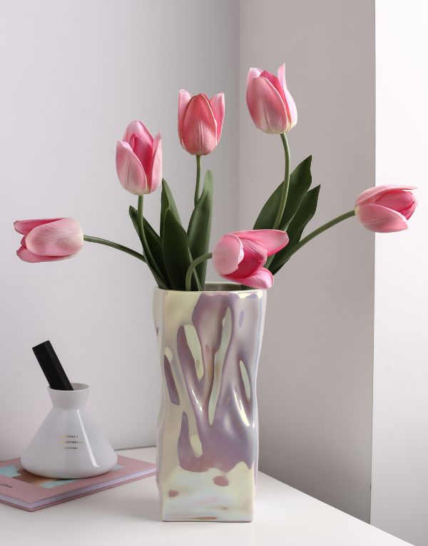 Enhance the ambiance of your home, living room, or office with this elegant Twisted Artificial Flower Vase Porcelain. Its unique twisted design adds a touch of sophistication to any space. Made with high-quality porcelain, this vase is durable and easy to maintain. Perfect for displaying your favorite artificial flowers for a lifelike touch.